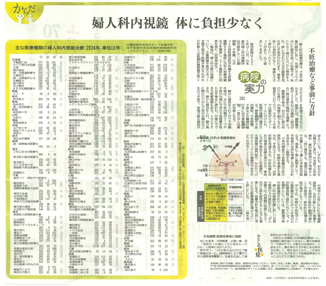 読売新聞「病院の実力」に当院の治療実績が掲載されました