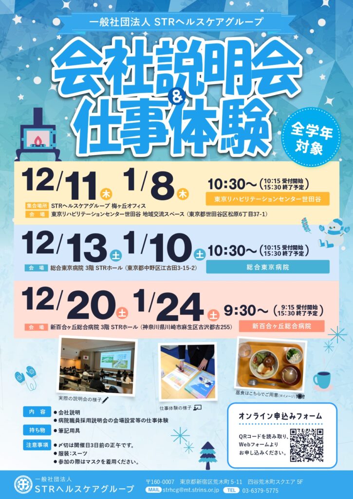 当法人では12月、そして年明け1月にも、会社説明会&仕事体験を開催いたします!